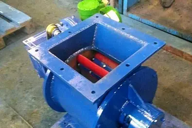 Питатель шлюзовый в общепромышленном исполнении производительностью 3 м3/час. Материал транспортирования цемент. Входной фланец Ø150 мм, выходной фланец 200х200 мм.