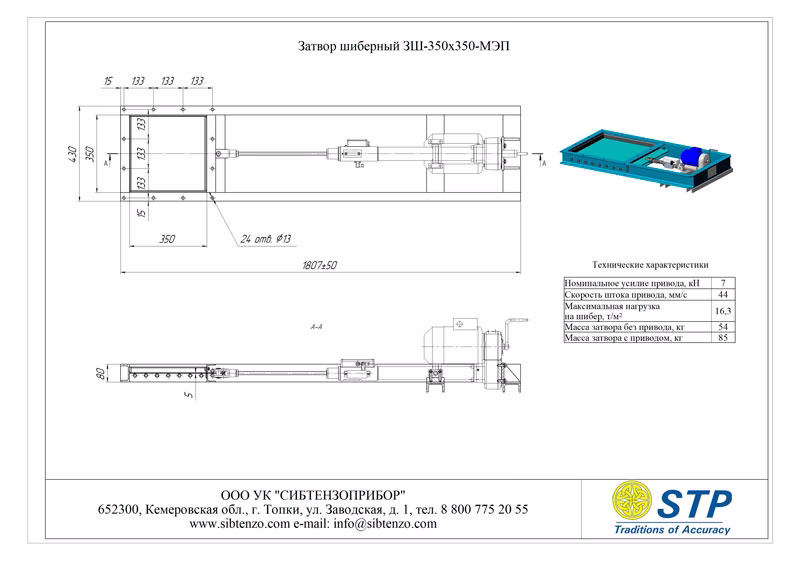 Затвор шиберный 3Ш-350х350-МЭП